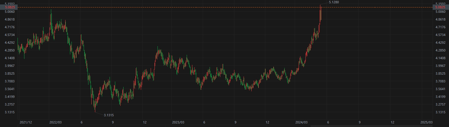 紐約期銅主連價(jià)格日線圖