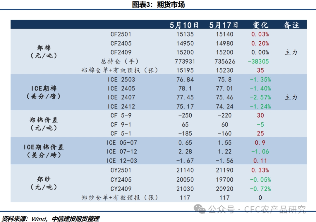 2、USDA周四公布的出口銷售報告顯示,5月9日止當周,美國當前市場年度棉花出口銷售凈增15.65萬包,較之前一周減少38%,較前四周均值減少7%。其中,對中國大陸出口銷售凈增6.36萬包。