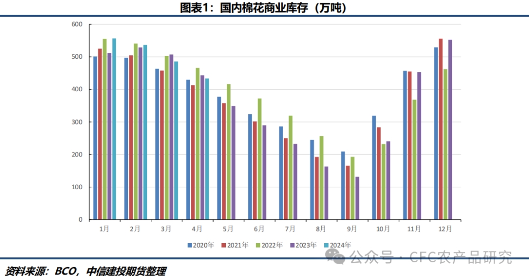 本周鄭棉(15285, 55.00, 0.36%)主力2409合約一度跌破15000元/噸,最低觸及14840點位,隨后超跌大幅反彈至15245元/噸。從基本面來看近期沒有大的變化,只是在市場情緒上有所緩解,之前的大幅下跌刺激著市場神經,從供需預期的角度來看也支持著這一下跌進程。新棉花年度的增產預期繼續(xù)維持,同時下游需求不振也是現(xiàn)實,于是市場理應對價格做出修正,但就像我們之前所提出的問題,市場是否過分悲觀了?隨著價格的下跌,人們似乎也開始從空頭的狂歡中反應過來,“現(xiàn)實好像也沒有差到那種程度?”。本周三BCO發(fā)布的最新棉花商業(yè)庫存數(shù)據(jù)也支持了這一觀點。