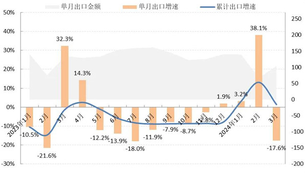 圖3 2024年1-3月我國(guó)服裝及衣著附件出口情況