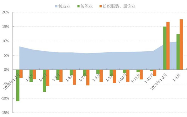 圖1 2024年1-3月服裝行業(yè)生產(chǎn)增速情況