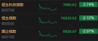 5月21日消息,港股三大指數集體低開低走,截至收盤,恒生指數(19220.621, -415.60, -2.12%)跌2.12%,報19220.62點,恒生科技指數(3980.63, -154.75, -3.74%)跌3.74%,國企指數跌2.07%。盤面上,百度跌超4%,網易、快手跌近4%,小米、騰訊跌近3%;汽車股集體下挫,理想汽車全天重挫逾19%;虛擬貨幣概念股齊漲,雄岸科技(0.077, 0.01, 6.94%)漲近7%;紐約銅遭遇逼空行情,洛陽鉬業(yè)(7.6, -0.59, -7.20%)跌超7%;光伏股集體走弱,信義能源(1.17, -0.05, -4.10%)跌超4%;內房股普遍下跌,中梁控股(0.25, -0.02, -7.41%)跌超7%;此外,互聯網醫(yī)療、零售、醫(yī)藥外包等板塊跌幅靠前。