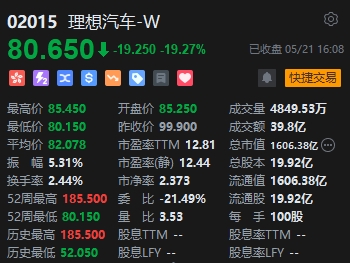 汽車股集體下挫,理想汽車全天重挫逾19%。理想汽車發(fā)布最新季度業(yè)績,2024年Q1收入總額為256億元,同比增長36.4%;凈利潤為5.91億元,同比減少36.7%;經調整凈利潤為13億元,同比減少9.7%;理想汽車預計第二季度交付量為105000至110000輛;理想汽車預計第二季度營收299億元至314億元。
