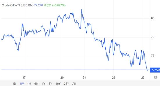周三隔夜,油價(jià)連續(xù)第三個(gè)交易日下跌,跌幅超過(guò)1%。WTI 7月原油期貨收跌1.09美元,跌幅超過(guò)1.38%,報(bào)77.57美元/桶。布倫特7月原油期貨收跌0.98美元,跌幅超過(guò)1.18%,報(bào)81.90美元/桶。