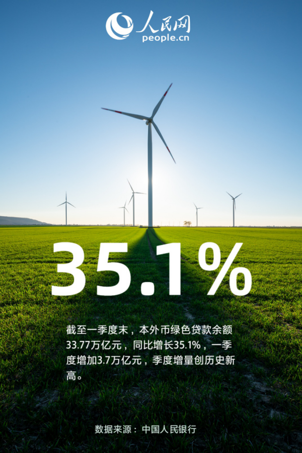 中國(guó)人民銀行近日發(fā)布的2024年一季度金融機(jī)構(gòu)貸款投向統(tǒng)計(jì)報(bào)告顯示,截至一季度末,本外幣綠色貸款余額33.77萬(wàn)億元,同比增長(zhǎng)35.1%,一季度增加3.7萬(wàn)億元,季度增量創(chuàng)歷史新高。
