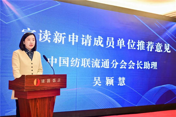 會(huì)上,中國(guó)紡聯(lián)流通分會(huì)會(huì)長(zhǎng)助理吳穎慧宣讀新申請(qǐng)成員單位推薦意見。通過現(xiàn)場(chǎng)表決,審議通過同廣州市白云區(qū)石井街工商業(yè)聯(lián)合會(huì)成為流通分會(huì)常務(wù)理事單位,杭州環(huán)北絲綢服裝城有限公司、常熟常青商業(yè)管理有限公司成為流通分會(huì)理事單位,嘉興市洪智科技有限公司成為流通分會(huì)會(huì)員單位。