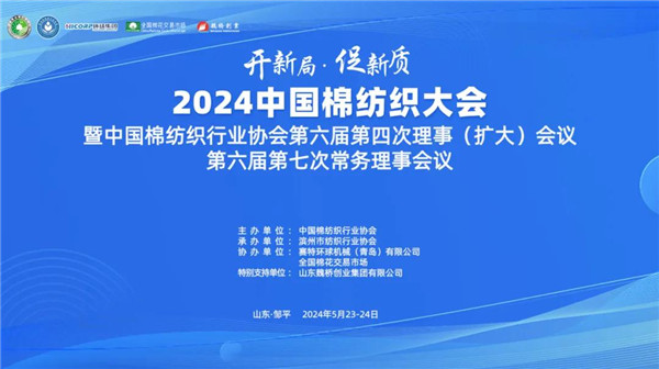 5月24日,2024中國(guó)棉紡織大會(huì)暨中國(guó)棉紡織行業(yè)協(xié)會(huì)第六屆第四次理事(擴(kuò)大)會(huì)議、第六屆第七次常務(wù)理事會(huì)議在山東省鄒平市舉行。會(huì)議由中國(guó)棉紡織行業(yè)協(xié)會(huì)主辦,濱州市紡織行業(yè)協(xié)會(huì)承辦,賽特環(huán)球機(jī)械(青島)有限公司、全國(guó)棉花交易市場(chǎng)協(xié)辦,并得到了山東魏橋創(chuàng)業(yè)集團(tuán)有限公司的特別支持。