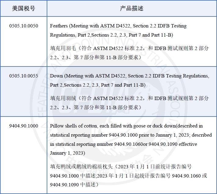 美國貿(mào)易代表辦公室(USTR)當?shù)貢r間2024年5月24日宣布,將429項產(chǎn)品的301關稅豁免臨時延長兩周,從2024年5月31日延長至2024年6月14日,同時將其中部分產(chǎn)品豁免期限延長至2025年5月31日,包括0505.10.0050填充用羽毛、0505.10.0055填充用羽絨和9404.90.1000填充鴨絨或鵝絨的棉質(zhì)枕頭三項產(chǎn)品(具體見下表)。