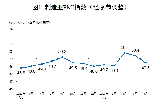 5月份,制造業(yè)采購經(jīng)理指數(shù)(PMI)為49.5%,比上月下降0.9個百分點,制造業(yè)景氣水平有所回落。
