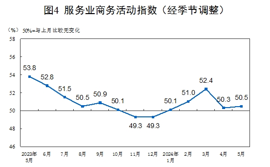 5月份,非制造業(yè)商務(wù)活動指數(shù)為51.1%,與上月基本持平,非制造業(yè)繼續(xù)保持?jǐn)U張。