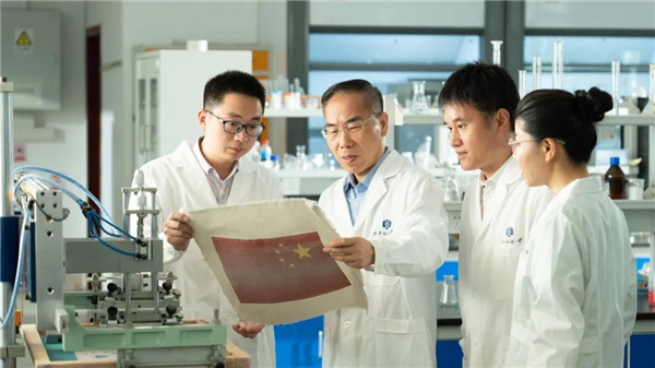 嫦娥六號月面國旗展示系統由中國航天三江集團聯合武漢紡織大學等單位共同研制。針對此次任務中高低溫交變、高真空及強紫外輻射等極端環(huán)境要求,武漢紡織大學紡織新材料與先進加工技術國家重點實驗室徐衛(wèi)林院士月面國旗團隊選用玄武巖材料,聯合湖北匯爾杰玄武巖纖維有限公司和安徽華茂集團,歷時近4年,攻克了玄武巖超細纖維紡絲、紡紗、織造及色彩構建等諸多國際難題,首次成功研制出無溫控保護、獨立動態(tài)展示的“石頭版”高品質織物國旗。研制期間,探月工程三期探測器系統總指揮、總設計師楊孟飛院士,中國科學院空間中心、中國航天三江集團等單位領導專家多次來校指導,探月工程三期總設計師胡浩、火山地質與第四紀地質學家劉嘉麒院士等也給予了鼎力支持和指導。