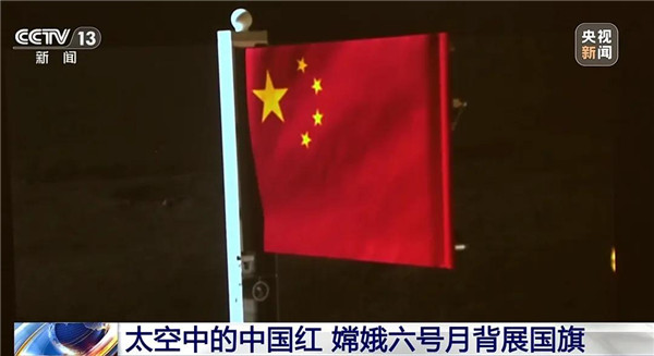 據央視新聞消息,6月3日,月表取樣完成后,嫦娥六號著陸器攜帶的一面由玄武巖纖維制成的“石頭版”五星紅旗在月球背面成功展開,嫦娥手中的國旗在陽光的照射下呈現出一抹鮮艷的中國紅。這是中國首次在月球背面獨立動態(tài)展示國旗,也是繼2020年12月3日嫦娥五號“織物版”五星紅旗在月球成功展示后,中國探測器在月球上再次打上“中國標識”。