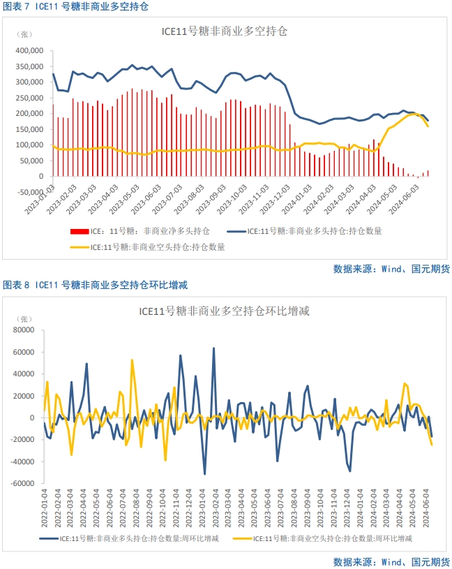 6月巴西中南部地區(qū)產(chǎn)量連續(xù)兩周不及預(yù)期,巴西產(chǎn)量前景可能低于預(yù)期,但巴西出口量同比增加。CFTC公布的最新周度持倉(cāng)報(bào)告顯示,截止6月18日當(dāng)周,對(duì)沖基金及大型投機(jī)客持有的原糖凈多頭倉(cāng)位為18524手,較之前一周增加7454手,多頭持倉(cāng)為177819手,較之前一周減少17111手,空頭持倉(cāng)為159295手,較之前一周減少24565手。