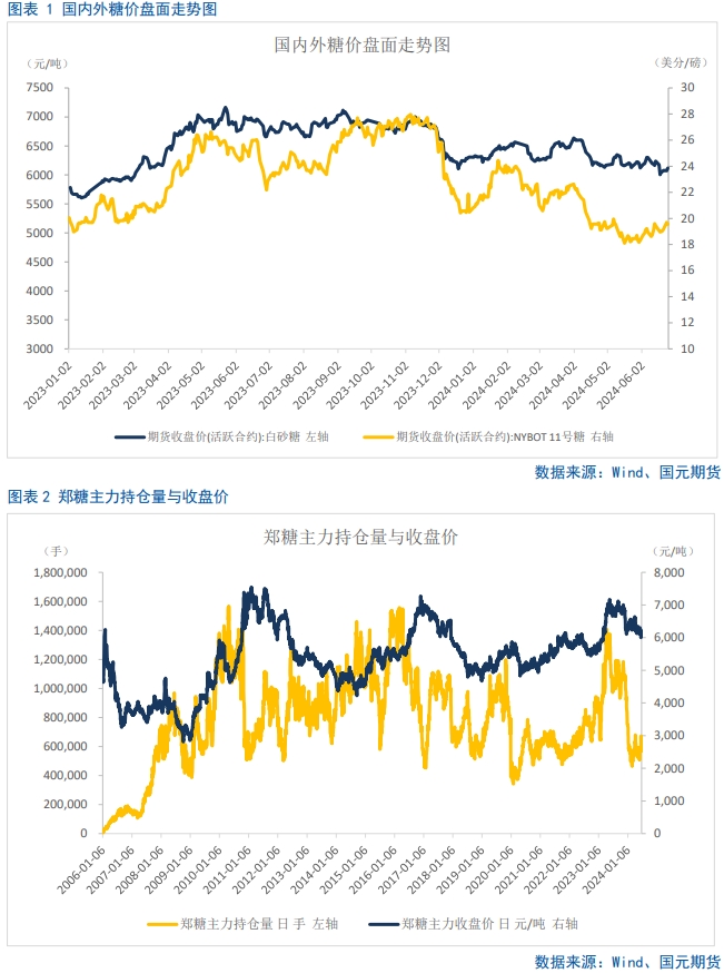 2024年5月份至今,自4月25日鄭糖主力期價(jià)觸及6100元/噸一線實(shí)現(xiàn)階段性探底之后,進(jìn)行了為期近兩個(gè)月的震蕩盤(pán)整,其中鄭糖期價(jià)盤(pán)面5月份的震蕩反彈要強(qiáng)于外糖盤(pán)面,主要是受?chē)?guó)內(nèi)現(xiàn)貨價(jià)格的支撐,而6月開(kāi)始,鄭糖期價(jià)盤(pán)面要明顯弱于外盤(pán),2024年6月18日,鄭糖主力期價(jià)結(jié)束了為期近兩個(gè)月在6100-6300元/噸震蕩的態(tài)勢(shì),出現(xiàn)了破位下跌,突破了6100元/噸一線支撐,收盤(pán)6004點(diǎn),空頭增倉(cāng)8.15萬(wàn)手,創(chuàng)2024年年內(nèi)最大單日跌幅3.25%。
