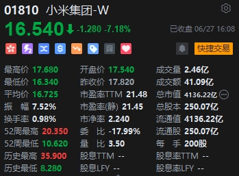 小米集團全天重挫逾7%。消息面上,此前小米聯(lián)合創(chuàng)始人、副董事長林斌違背其5年不再減持承諾,引發(fā)市場持續(xù)爭議。據(jù)港交所信息顯示,6月4日-6月6日,林斌連續(xù)3日減持小米股份合計1000萬股,套現(xiàn)約1.79億港元。盡管林斌解釋稱,此次減持股份為早前已捐贈給旗下基金會的1.2億B類股,并不包含在禁售承諾中。減持金額也主要是為履行與中山大學(xué)1億元的捐贈協(xié)議和其他公益用途。但由于林斌歷史上曾多次大筆減持套現(xiàn)小米股份,部分投資者對此次減持事項仍十分關(guān)切,甚至將其視為林斌“套現(xiàn)離場”的信號。