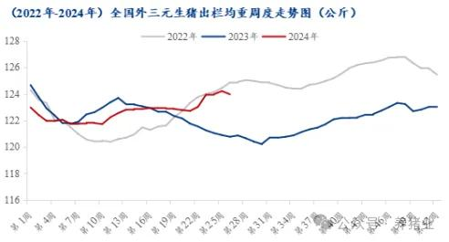 圖11 2022年-2024年全國外三元生豬出欄均重周度走勢圖
