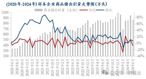 圖9(2020年-2024年)樣本企業(yè)商品豬出欄量走勢圖