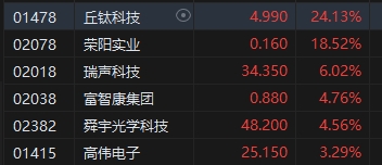 蘋果概念股集體走強(qiáng),丘鈦科技發(fā)盈喜大漲逾24%。消息面上,丘鈦科技盈喜公告顯示,預(yù)期今年上半年股東應(yīng)占綜合溢利較去年同期的2169.2萬元(單位人民幣,下同),同比增長約400至500%。此外,智能AI功能有望提振iPhone需求,蘋果計(jì)劃在2024年將新iPhone出貨量提高10%,預(yù)計(jì)今年下半年iPhone 16的出貨量將達(dá)到9000萬部。