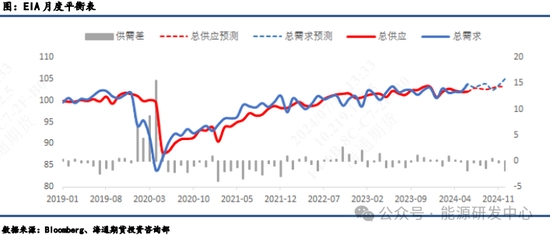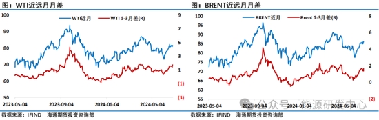 我們觀察到在CME-OPEC WATCH上,OPEC+本次會(huì)議的預(yù)期絕大多數(shù)偏向OPEC+延長(zhǎng)減產(chǎn),且越臨近會(huì)議延長(zhǎng)檢查預(yù)期值越高。所以本次會(huì)議的延長(zhǎng)減產(chǎn)是非常符合市場(chǎng)預(yù)期的,也會(huì)提前消化這一預(yù)期。在公布決議后2024年10月至2025年9月期間可能會(huì)逐步退出每日220萬桶的自愿減產(chǎn)的聲明,反而將油價(jià)形成了稍微偏空的影響,國(guó)際油價(jià)在會(huì)議后有明顯下挫。