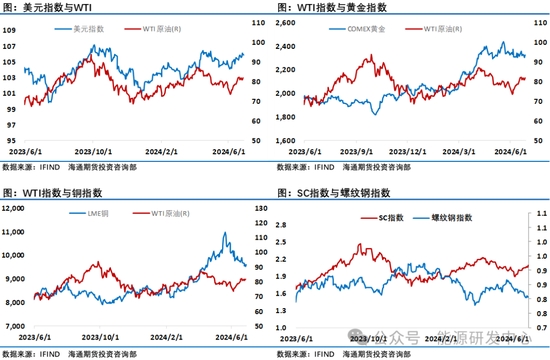 2024年美聯(lián)儲(chǔ)降息不斷被一次次后移,這也讓美元強(qiáng)勢(shì)表現(xiàn)得以延續(xù),不過對(duì)于大宗商品來講,美國(guó)經(jīng)濟(jì)的強(qiáng)勁表現(xiàn)及降息預(yù)期對(duì)價(jià)格運(yùn)行還是影響明顯。2024年上半年一個(gè)比較有意思的現(xiàn)象是,油價(jià)與美元走勢(shì)節(jié)奏接近一致,這在歷史上通常負(fù)相關(guān)的運(yùn)行表現(xiàn)出明顯的差異,這樣的走勢(shì)也意味著原油市場(chǎng)正在迎來新階段。另外原油與黃金(570, 0.00, 0.00%)、銅、鋼材的走勢(shì)出現(xiàn)明顯的背離,事實(shí)上這種情況在去年下半年也出現(xiàn)過。這種不同資產(chǎn)之間的背離走勢(shì)給資金帶來了非常好的資產(chǎn)配置機(jī)會(huì),6月份在原油市場(chǎng)供需層面沒有強(qiáng)勢(shì)復(fù)蘇的背景,資金依然借對(duì)三季度旺季預(yù)期大幅推漲油價(jià)的行為,除了一些客觀因素之外,從資產(chǎn)配置視角有很大可能是在大宗商品缺乏做的對(duì)象階段,原油成為了資金多配標(biāo)的,從持倉(cāng)數(shù)據(jù)可以看出資金確實(shí)也在油價(jià)反彈階段做出了積極增持原油多單的行為,這種從大類資產(chǎn)配置的視角的資金行為在一定程度上也放大了油價(jià)的漲勢(shì)。