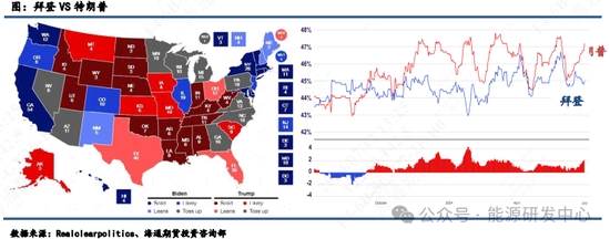 今年是美國(guó)大選年,下半年隨著總統(tǒng)大選的辯論開啟,對(duì)油價(jià)帶來的影響也會(huì)遞增。目前來看,拜登與特朗普政府民調(diào)支持率較為接近,但特朗普在重要的搖擺州中的支持率具有領(lǐng)先優(yōu)勢(shì)。雙方對(duì)原油市場(chǎng)的政策有一定分歧:特朗普政府傾向于回歸傳統(tǒng)化石能源,包括加快發(fā)放石油和天然氣的勘探許可,增產(chǎn)傳統(tǒng)能源;而拜登政府傾向于發(fā)展清潔能源和削減碳排放,以推動(dòng)2035年實(shí)現(xiàn)無碳化電力為目標(biāo)。由于加快石油和天然氣的勘探許可發(fā)放或進(jìn)一步使美國(guó)石油產(chǎn)量增加,特朗普的政策主張下油價(jià)表現(xiàn)可能相對(duì)偏弱,拜登政府偏中性,預(yù)計(jì)變化不大。