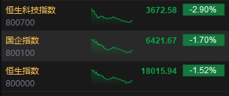 7月15日消息,港股三大指數(shù)低開低走,截至收盤,恒生指數(shù)(18015.939, -277.44, -1.52%)跌1.52%,報18015.94點(diǎn),恒生科技指數(shù)(3672.58, -109.50, -2.90%)跌2.9%,國企指數(shù)跌1.7%。盤面上,科網(wǎng)股齊挫,嗶哩嗶哩跌超8%,百度跌超5%,京東跌超4%;SaaS概念股跌幅居前,金蝶國際(6.74, -0.96, -12.47%)重挫12%;互聯(lián)網(wǎng)醫(yī)療股跌幅居前,京東健康(21.55, -1.20, -5.28%)跌超5%;黃金股逆勢上漲,中國黃金國際(53.65, 2.20, 4.28%)漲超4%;煤炭股漲幅靠前,南戈壁(3.71, 0.19, 5.40%)漲超5%;醫(yī)藥外包概念股普挫,金斯瑞生物科技(12.54, 2.54, 25.40%)逆勢漲超25%。