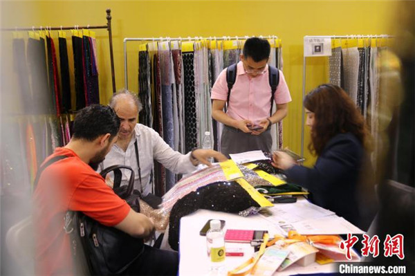今年5月,中外客商在柯橋挑選面料。項菁 攝