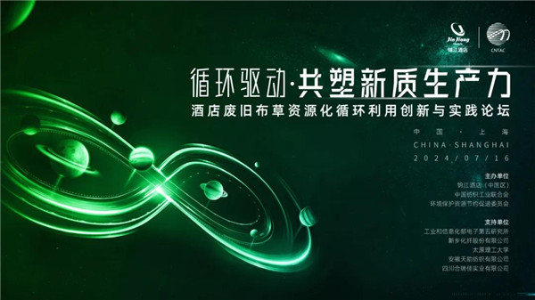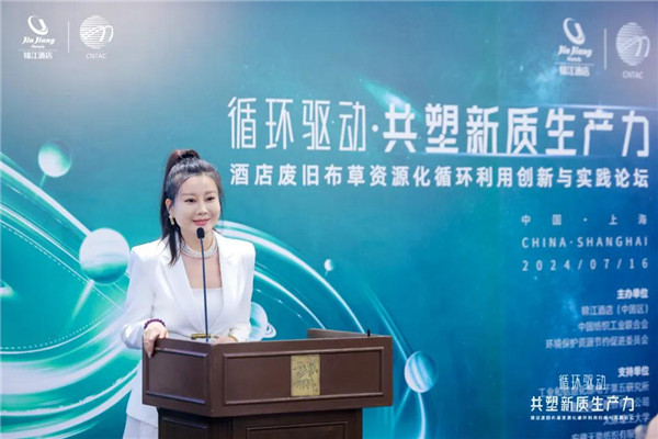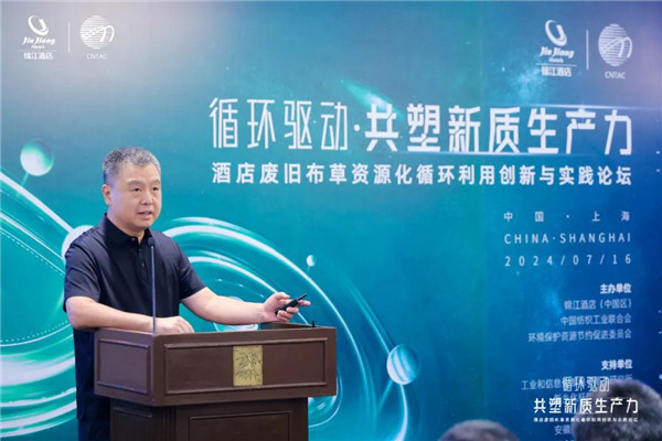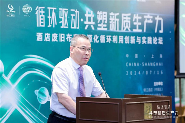 為加快推動(dòng)酒店廢舊布草資源循環(huán)的產(chǎn)業(yè)化、規(guī)模化和市場(chǎng)化,匯聚更多創(chuàng)新力量,共“碳”多元共贏新模式,7月16日,以“循環(huán)驅(qū)動(dòng) 共塑新質(zhì)生產(chǎn)力”為主題的“酒店廢舊布草資源化循環(huán)利用創(chuàng)新與實(shí)踐論壇”在上海舉辦。會(huì)上,中國(guó)紡織工業(yè)聯(lián)合會(huì)副秘書長(zhǎng)、中國(guó)紡織工業(yè)聯(lián)合會(huì)產(chǎn)業(yè)經(jīng)濟(jì)研究院院長(zhǎng)華珊,上海錦江國(guó)際酒店股份有限公司首席執(zhí)行官毛嘯,錦江酒店(中國(guó)區(qū))首席執(zhí)行官王偉,錦江酒店(中國(guó)區(qū))品牌發(fā)展中心高級(jí)副總裁張中皓,四川合瑞佳實(shí)業(yè)有限公司董事長(zhǎng)劉浩宇,新鄉(xiāng)化纖股份有限公司總工程師謝躍亭共同啟動(dòng)酒店廢舊布草資源化循環(huán)利用規(guī)模化推廣項(xiàng)目。