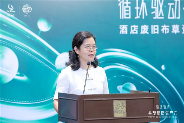 中國(guó)紡織工業(yè)聯(lián)合會(huì)副秘書長(zhǎng)、中國(guó)紡織工業(yè)聯(lián)合會(huì)產(chǎn)業(yè)經(jīng)濟(jì)研究院院長(zhǎng)華珊致辭時(shí)指出,中國(guó)紡聯(lián)環(huán)資委與錦江酒店從共同發(fā)起“酒店廢舊布草資源化利用倡議”,到完成酒店廢舊布草資源化利用基礎(chǔ)性研究和產(chǎn)業(yè)試點(diǎn)歷時(shí)兩年多的時(shí)間,通過產(chǎn)業(yè)試點(diǎn)對(duì)廢舊布草的循環(huán)路徑的技術(shù)可行性、經(jīng)濟(jì)可行性、環(huán)境效益進(jìn)行了綜合分析和可行性論證。目前,該項(xiàng)目已經(jīng)進(jìn)入千噸級(jí)中試階段,取得了階段性成果,為廢舊紡織品循環(huán)利用探索出了一條可持續(xù)發(fā)展新路徑,未來在錦江酒店以及其他酒店的示范引領(lǐng)下,必將帶動(dòng)更大產(chǎn)量和規(guī)模,因此擴(kuò)大技術(shù)的應(yīng)用面勢(shì)在必行,未來可期。她希望以此次會(huì)議為契機(jī),能進(jìn)一步拓展回收渠道,完善循環(huán)技術(shù),加大綠色產(chǎn)品設(shè)計(jì),引領(lǐng)綠色低碳生活方式,將廢舊布草的循環(huán)利用項(xiàng)目推向市場(chǎng)化應(yīng)用層面,為紡織行業(yè)的綠色發(fā)展作出更大貢獻(xiàn)。