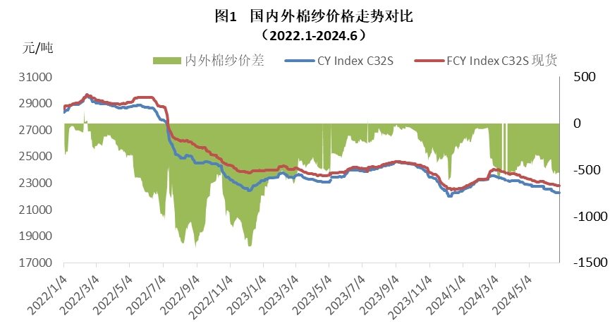 二、內(nèi)外棉紗月度均價(jià)下跌