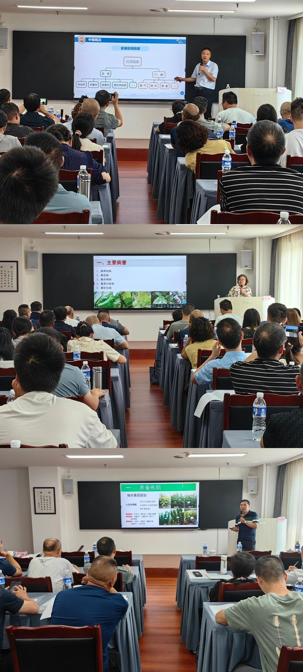 培訓(xùn)會邀請了國家現(xiàn)代農(nóng)業(yè)產(chǎn)業(yè)技術(shù)體系蠶桑病蟲害防控研究室主任、華南農(nóng)業(yè)大學(xué)劉吉平教授、省農(nóng)科院蠶研所青學(xué)剛主任和危玲副研究員、省蠶業(yè)管理總站副站長楊遠(yuǎn)萍和三級調(diào)研員謝忠良等授課,他們分別就蠶病綜合防控、農(nóng)藥中毒事件分析、桑園病蟲害綠色防控、高效優(yōu)質(zhì)生產(chǎn)技術(shù)以及蠶桑經(jīng)濟形勢分析等進行了專題講授。