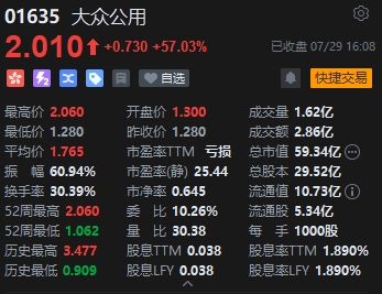 大眾公用漲超57%。消息面上,A股大眾交通再度漲停,月內(nèi)暴漲2.3倍。據(jù)悉,7月初,上海發(fā)布了首批無人駕駛智能網(wǎng)聯(lián)汽車示范應(yīng)用許可。大眾交通有關(guān)人士表示,百度旗下蘿卜快跑和大眾交通旗下大眾出行一共合作申請示范運(yùn)營三批共65輛Robotaxi。大眾交通2024年一季報顯示,公司持股比例在5%以上的股東僅有1家,為上海大眾公用事業(yè)(集團(tuán))股份有限公司,持股比例為20.01%。