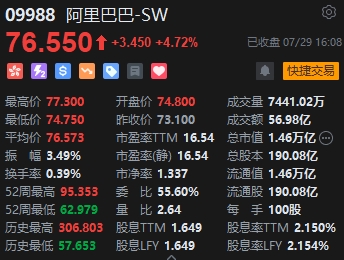 阿里巴巴漲近5%。據(jù)悉,淘天7月26日密集調(diào)整商家規(guī)則,最主要的變化有三個:店鋪流量規(guī)則大改,明確以 “體驗分” 為流量分配核心依據(jù);對高體驗分店鋪松綁 “僅退款”;此外,淘天將開始收取基礎(chǔ)軟件服務(wù)費(fèi),費(fèi)率為每筆訂單確收成交金額的0.6%。
