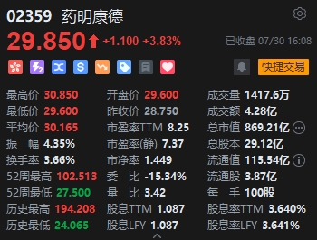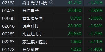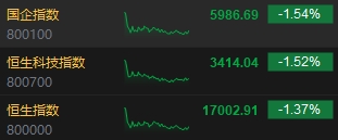 7月30日消息,港股三大指數(shù)低開(kāi)低走,截至收盤(pán),恒生指數(shù)(17002.91, -235.43, -1.37%)跌1.37%,報(bào)17002.91點(diǎn),恒生科技指數(shù)(3414.04, -52.56, -1.52%)跌1.52%,國(guó)企指數(shù)跌1.54%。盤(pán)面上,科網(wǎng)股普遍下跌,快手、小米跌約3%,美團(tuán)跌近2%,京東、騰訊跌超1%;蘋(píng)果概念股跌幅居前,舜宇光學(xué)科技(41.75, -2.55, -5.76%)跌近6%;乳制品股普遍下挫,蒙牛乳業(yè)(12.62, -0.88, -6.52%)跌超6%;石油股普遍低迷,中海油(19.92, -0.68, -3.30%)跌超3%;醫(yī)藥外包概念股逆勢(shì)上漲,藥明康德(29.85, 1.10, 3.83%)漲近4%。