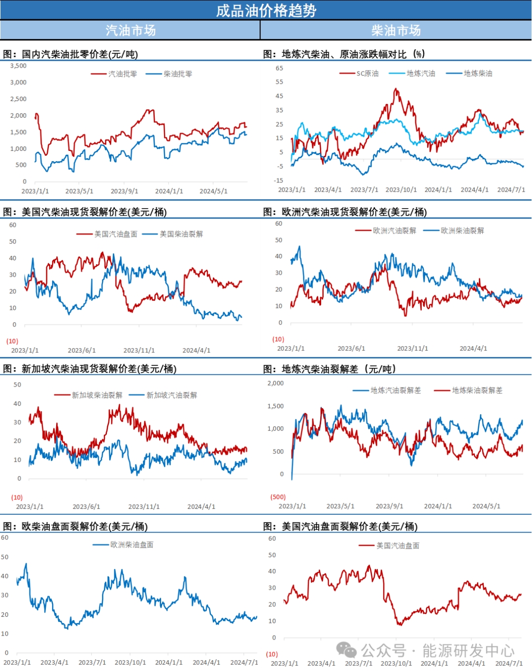 讓油價(jià)破局下跌的直接影響是美國(guó)公布的系列數(shù)據(jù)重新引發(fā)了投資者對(duì)經(jīng)濟(jì)衰退進(jìn)而影響需求的擔(dān)憂,夜盤美國(guó)公布7月ISM制造業(yè)PMI錄得46.8,為2023年11月以來新低。數(shù)據(jù)公布之后油價(jià)開始持續(xù)回落,并逐漸擴(kuò)大跌幅,原油(607, -8.60, -1.40%)和銅均大跌引領(lǐng)大宗商品昨天的回調(diào),顯然投資者情緒和預(yù)期處于搖擺階段,而近期宏觀經(jīng)濟(jì)層面因素成為壓制價(jià)格的重要因素,英國(guó)央行昨天如期下調(diào)利率,美國(guó)系列糟糕的數(shù)據(jù)有助于美聯(lián)儲(chǔ)降息決定,但投資者更擔(dān)心經(jīng)濟(jì)衰退的風(fēng)險(xiǎn)。而對(duì)于原油來說中東地緣問題,和現(xiàn)階段供需層面的去庫(kù)表現(xiàn)會(huì)為油價(jià)反彈提振能量。最終油價(jià)的節(jié)奏需要取決于投資者對(duì)諸多因素的權(quán)衡。昨天報(bào)告中提到對(duì)油價(jià)運(yùn)行節(jié)奏把握上仍有很大挑戰(zhàn),夜盤市場(chǎng)就馬上給上了實(shí)踐課,而這個(gè)局面預(yù)計(jì)還將延續(xù),我們判斷油價(jià)的反彈動(dòng)作并未結(jié)束,從交易角度者來說高波動(dòng)的行情把握起來難度很大,注意節(jié)奏把握。
