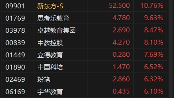 教育股全天大漲,新東方漲超10%。消息面上,國(guó)務(wù)院近日印發(fā)《關(guān)于促進(jìn)服務(wù)消費(fèi)高質(zhì)量發(fā)展的意見》,其中提出推動(dòng)高等院校、科研機(jī)構(gòu)、社會(huì)組織開放優(yōu)質(zhì)教育資源,滿足社會(huì)大眾多元化、個(gè)性化學(xué)習(xí)需求。推動(dòng)職業(yè)教育提質(zhì)增效,建設(shè)高水平職業(yè)學(xué)校和專業(yè)。市場(chǎng)認(rèn)為,該政策是在正視教培需求的背景下推出,無(wú)疑給行業(yè)帶來(lái)了積極信號(hào)。另外,近日多家教育頭部企業(yè)相繼公布了最新的經(jīng)營(yíng)成績(jī),彰顯出了業(yè)績(jī)修復(fù)跡象,讓市場(chǎng)的預(yù)期進(jìn)一步抬高。