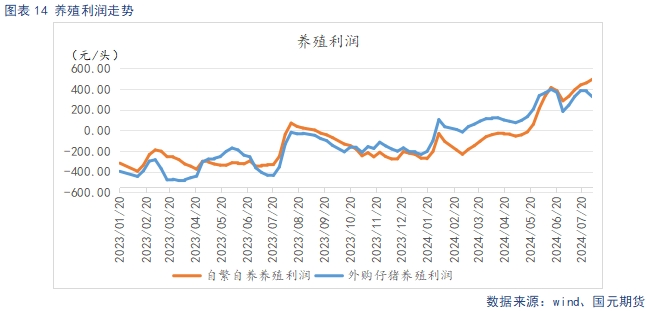 截止8月2日,自繁自養(yǎng)養(yǎng)殖盈利494.5元/頭,盈利較上周環(huán)比擴(kuò)大35.15元/頭。外購(gòu)仔豬養(yǎng)殖盈利323.61元/頭,盈利較上周環(huán)比下降51.21元/頭。豬價(jià)回暖,飼料價(jià)格處于低位,養(yǎng)殖利潤(rùn)扭虧為盈,預(yù)計(jì)三四季度豬價(jià)仍將處于偏強(qiáng)區(qū)間,利潤(rùn)空間將維持在較好水平。