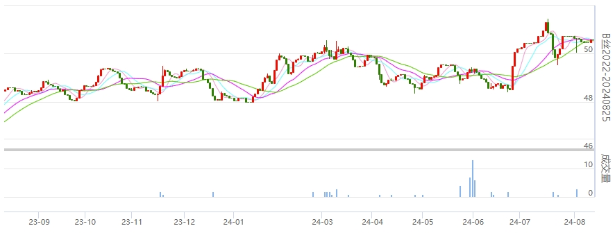 今日(2024年08月13日,周二)中國繭絲綢交易市場生絲電子指數(shù)持平報5008.02點。B絲2022D(商檢4A級生絲):240825合約報平收于50.58萬元;240925合約下跌0.06萬元報收于50.16萬元;250325合約下跌0.03萬元報收于49.98萬元。
