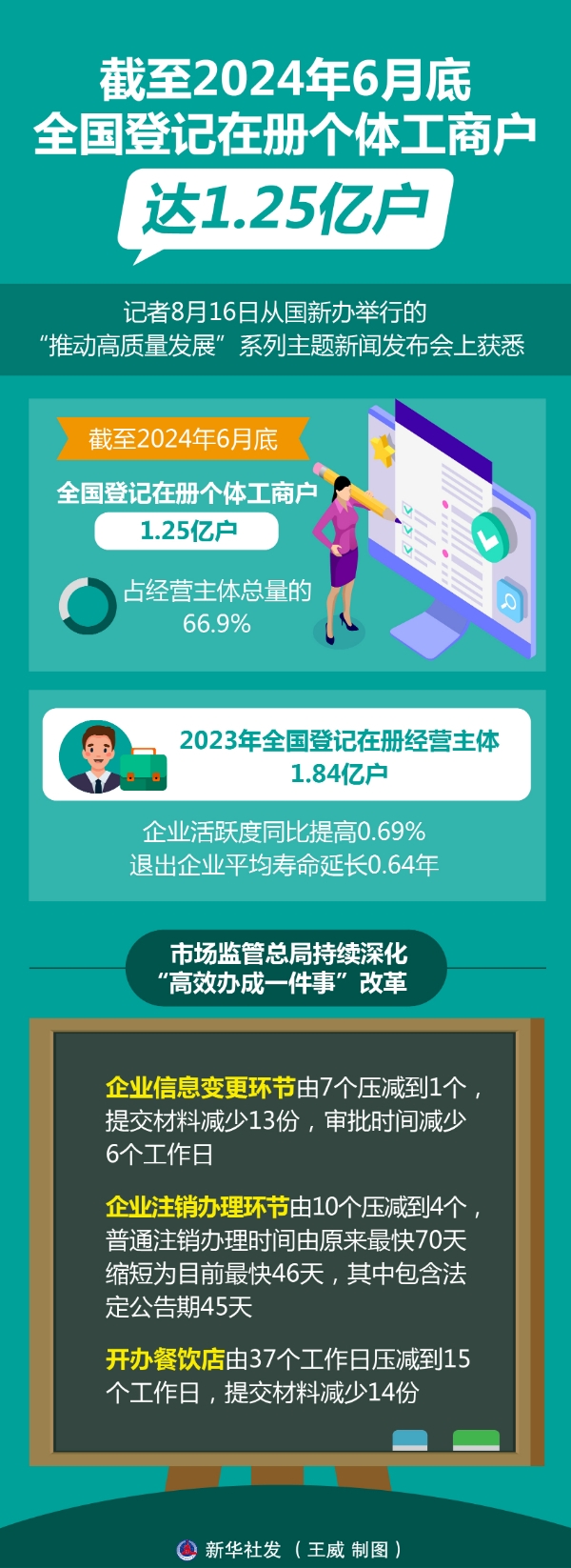 截至今年6月底,全國(guó)登記在冊(cè)個(gè)體工商戶達(dá)到1.25億戶,占經(jīng)營(yíng)主體總量的66.9%。