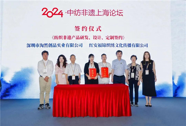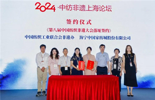為弘揚中華優(yōu)秀傳統(tǒng)文化,推動紡織非遺新質(zhì)生產(chǎn)力發(fā)展,深度挖掘紡織非遺文化價值,展現(xiàn)其在當代社會的創(chuàng)新活力和市場潛力,8月14日,2024intertextile秋冬家紡展開幕首日,以“紡織非遺一產(chǎn)業(yè)化與市場化中破局前行”為主題的“2024·中紡非遺上海論壇”同期召開。論壇上,還進行了兩組落地合作簽約。