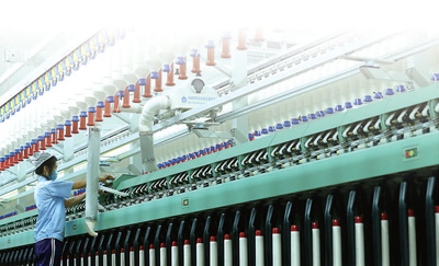 圖為青島即發(fā)盛寶紡織有限公司紡織智能生產(chǎn)線正在生產(chǎn)高端纖維