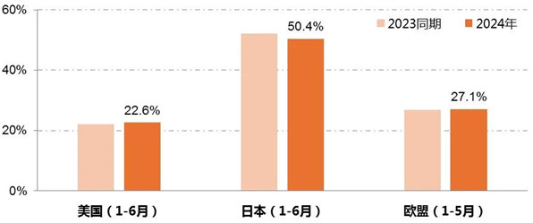 今年以來(lái),我國(guó)紡織行業(yè)面臨的外部形勢(shì)較為復(fù)雜,海外市場(chǎng)需求疲弱、國(guó)際貿(mào)易摩擦加劇等風(fēng)險(xiǎn)因素帶動(dòng)行業(yè)國(guó)際貿(mào)易環(huán)境不穩(wěn)定不確定因素明顯增多。但受益于行業(yè)自身體系完備、高效協(xié)同的產(chǎn)業(yè)優(yōu)勢(shì)及全球領(lǐng)先的制造優(yōu)勢(shì),行業(yè)國(guó)際市場(chǎng)競(jìng)爭(zhēng)力持續(xù)釋放,上半年我國(guó)紡織品服裝在美國(guó)、歐盟進(jìn)口市場(chǎng)中所占份額小幅提升,在日本進(jìn)口市場(chǎng)中所占份額微降。