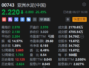 建材水泥股個(gè)別重挫,亞洲水泥跌超26%。亞洲水泥(中國(guó))(00743.HK)公布,控股股東亞洲水泥股份提出以協(xié)議安排方式將公司私有化的決議案未獲計(jì)劃股東于法院會(huì)議上批準(zhǔn)。因此,私有化建議及計(jì)劃已告失效。根據(jù)收購(gòu)守則,要約人十二個(gè)月內(nèi)不得就股份宣布另一項(xiàng)要約。