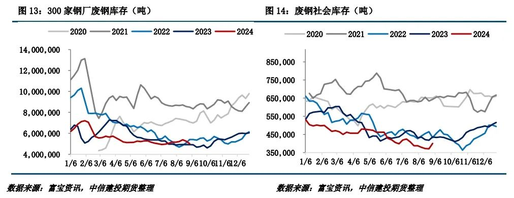 (3)廢鋼庫存:廢鋼社會資源偏緊,鋼廠庫存持續(xù)下降。本周市場情緒回暖,盼漲氛圍濃厚,商家出現(xiàn)捂貨惜售心里,市場有效資源偏緊,貨場收貨難度加大,鋼廠到貨持續(xù)低于日耗,庫存呈下降態(tài)勢,對廢鋼價格形成一定支撐。疊加鋼廠利潤有所修復(fù),復(fù)產(chǎn)計劃增加,廢鋼需求有向好預(yù)期,短期內(nèi)廢鋼價格具有一定抗跌性。