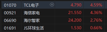 家電股漲幅居前,TCL電子(4.79, 0.21, 4.58%)、海信家電漲超4%。華創(chuàng)證券指出,關(guān)稅過(guò)度悲觀導(dǎo)致家電出口鏈價(jià)值凸顯。該行指出,美國(guó)市場(chǎng)難以剝離中國(guó)系供給;美國(guó)家電產(chǎn)業(yè)微末,本地投產(chǎn)事倍功半;寡頭價(jià)值傳遞,對(duì)美業(yè)務(wù)實(shí)際影響有限。此外,新興區(qū)域龐大增量保障成長(zhǎng)性,比較各出口產(chǎn)業(yè)家電極具優(yōu)勢(shì)。高度關(guān)注出口鏈家電頭部企業(yè)。