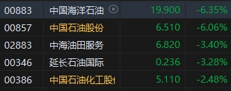 石油股全線下挫,中海油、中石油跌超6%。消息面上,當?shù)貢r間周二,國際原油期貨雙雙暴跌,布油一度跌超5%。截至收盤,WTI10月原油期貨下跌4.36%報70.34美元/桶,主連價格創(chuàng)去年12月以來的最低水平;布倫特11月原油期貨下跌4.86%報73.75美元/桶,主連價格自1月份來首次跌破75美元。據(jù)外媒報道,解決利比亞原油生產(chǎn)和出口停頓爭端的協(xié)議即將達成,國際油價因此跌至年初以來的最低點。