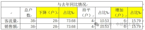 2,從銷售情況來看,受訪的商家反饋的經(jīng)營狀態(tài)與客流情況基本一致。有63.71%的商家反饋今年的銷售與去年同比是下降的。僅有20.46%的商家反饋銷售同比有所增加。