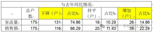 1,從客流量情況來看,與商場的調(diào)查情況一致,服裝批發(fā)市場的客流量同比出現(xiàn)大面積的下降。在受訪的商戶中,有74.86%的商家表示客流量同比下降了,僅有14.86%的商家表示客流有所增加。從今年的調(diào)查中看,除了去年因為疫情管控和放開的原因造成去年調(diào)查時同比情況有所好轉(zhuǎn),其他時候客流量是連年下降的。