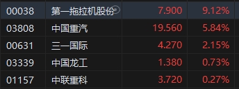 重型機(jī)械股漲勢(shì)活躍,第一拖拉機(jī)股份漲超9%。農(nóng)業(yè)農(nóng)村部、國家發(fā)展改革委、財(cái)政部聯(lián)合印發(fā)《關(guān)于加大工作力度持續(xù)實(shí)施好農(nóng)業(yè)機(jī)械報(bào)廢更新補(bǔ)貼政策的補(bǔ)充通知》,提出要持續(xù)實(shí)施好農(nóng)機(jī)報(bào)廢更新補(bǔ)貼政策,加力推進(jìn)老舊農(nóng)機(jī)報(bào)廢更新,加快農(nóng)機(jī)結(jié)構(gòu)調(diào)整。