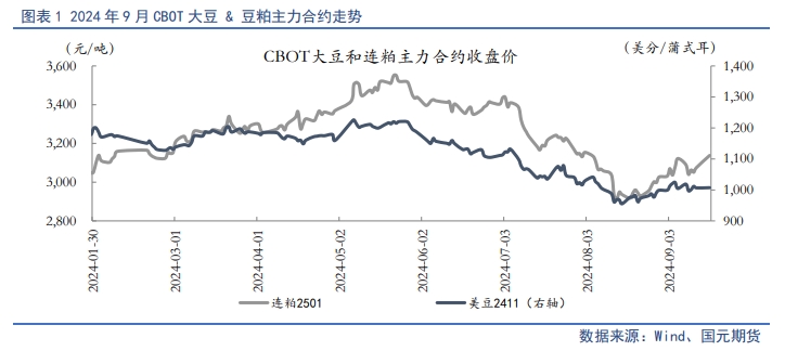 進(jìn)入9月以來,CBOT大豆利空階段性出盡,期價再度反彈至1100美分/蒲關(guān)口附近,連粕較美豆強(qiáng)勢,盤面逼近3200元/噸關(guān)口。月初加拿大,中國商務(wù)部新聞發(fā)言人表示,依法對自加拿大進(jìn)口油菜籽發(fā)起反傾銷調(diào)查,中秋前,美國貿(mào)易代表辦公室發(fā)布有關(guān)對華加征“301關(guān)稅”進(jìn)一步行動的最終決定,反制措施預(yù)期之下,市場對進(jìn)口大豆、菜籽量的后市供應(yīng)預(yù)期向緊,憂慮情緒推高兩粕價格。不過全球供需來看,9月美國農(nóng)業(yè)部未如市場預(yù)期調(diào)高新作單產(chǎn)、產(chǎn)量,對市場影響中性看待,美豆豐產(chǎn)預(yù)期逐步落地,市場后續(xù)交易空間逐步縮窄。國內(nèi)來看,國內(nèi)進(jìn)口大豆到港高峰已過,而隨著下游備貨增加,豆粕需求有所好轉(zhuǎn),累庫周期收尾,供需邊際向緊。另外,隨著南美大豆進(jìn)入種植期,全球大豆定價權(quán)轉(zhuǎn)移,美豆底部獲支撐,豆粕下方支撐較強(qiáng)。